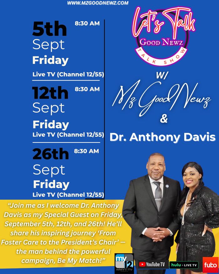 Catch the vibes, the stories, and the inspiration! Stream "Let's Talk Good Newz" Talk Show LIVE on TV (channel 12 or 55)--where positivity takes center stage!